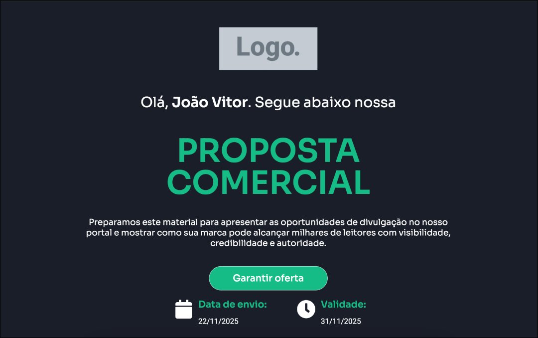 Ele transforma o envio de propostas em um processo profissional, rápido e altamente persuasivo, ideal para elevar o valor percebido do seu portal e fechar mais contratos.
